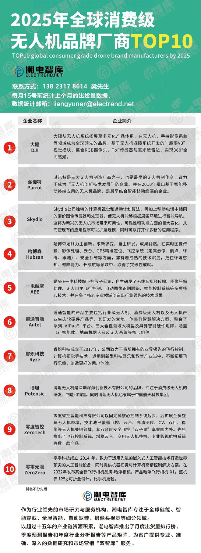 2025年全球消费级无人机品牌厂商TOP10